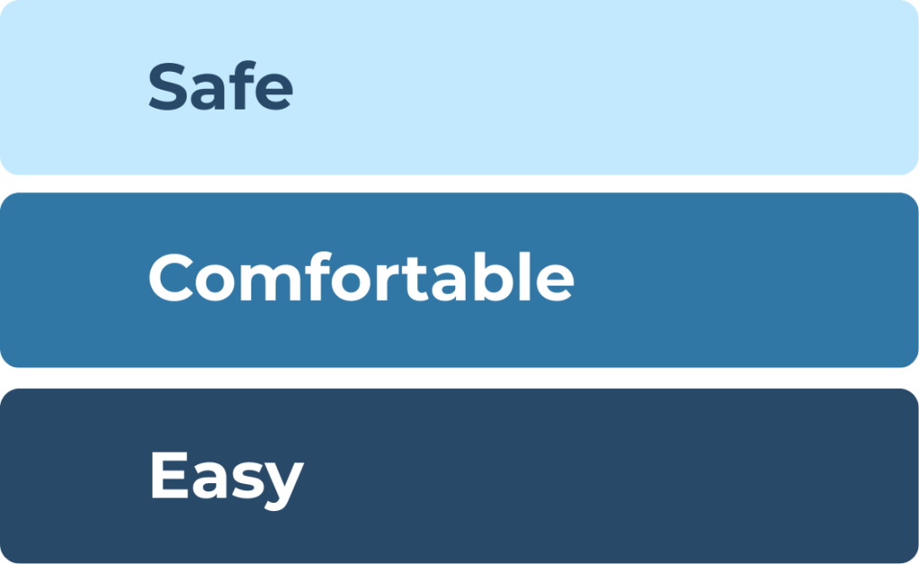 The design allows the client to stay actively engaged in the transfer, improving circulation and providing a greater sense of independence and reassurance.